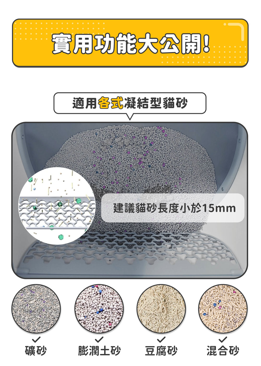 3.濾砂網孔洞約2cm,若貓咪糞便小於2cm將可能影響清潔效果